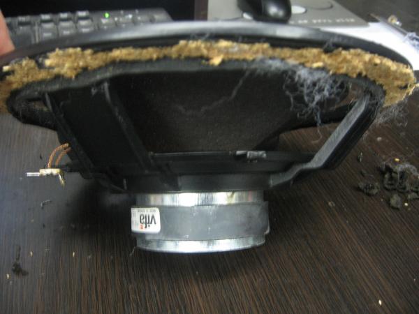 | Audio Note izgleda pred menjavo obese enote kot da so si ga za kosilo privoščile miši. Sicer je pri enotah z papirnatimi membranami in papirnatimi, ali penastimi obesami pogosto potrebna menjava. |