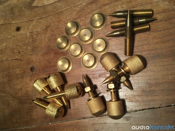 Prodam komplet 8 masivnih, kakovostnih izolacijskih konic (spikes) iz mesinga za zvočne omarice ali drugo audio opremo. 4 so povsem nove, 4 pa uporabljene, s patino (možno očistiti s pasto do sijaja).