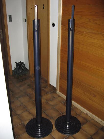 Prodam 2 kovinski stojali lakirane metalik črne barve. Podnožje premera 40 cm višina 166 cm. Teža enega stojala 18 kg. Stojali sta domače izdelave.