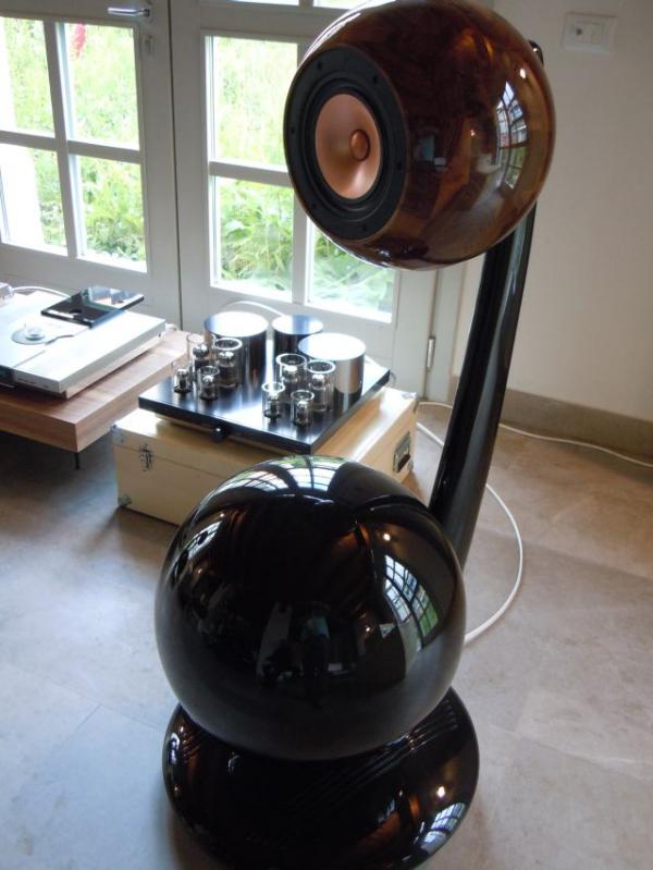 Se pa povsem strinjam s predhodnikoma. Prostor v katerem je razstavljal Audio Alto je bil v smislu akustike vse prej kot izjemen - kamnita tla, nobene zavese, relativno prazen volumen itd. Ampak zvok iz Babušk, kot bi lahko zaradi oblike poimenoval zvočnika, je bil ob pogonu prek ojačevalca tipa push pull v smislu frekvenčnega razpona in reprodukcije vrhunski. Sem kar sedel in sedel ter užival. Zelo imenitno - vključno z dizajnom, kjer se vprašaš: pa kje za vraga so dobili v tej naši mali Sloveniji rokodelce, ki so zmožni narediti nekaj tako lepega kot sta čudovito lakirani sferi iz orehovine na vrhu "babušk". |