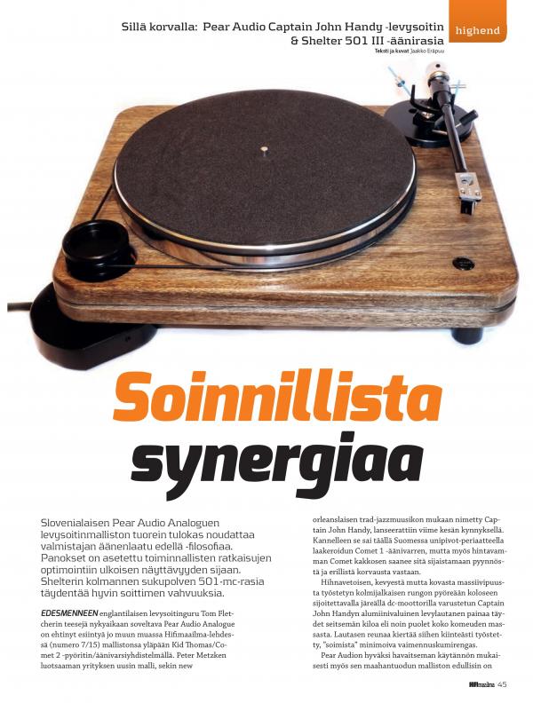 Tokrat pa tudi ne prvič v Finski reviji Hifimaailma izdajatelja Fokus Media Finland iz Helsinkov. So pa gramofon malo "posvetlili" klasično analogno s smirkovim papirjem ali pa digitalno v photoshopu. Glavica je pa tudi zanimiva Shelter 501 III.