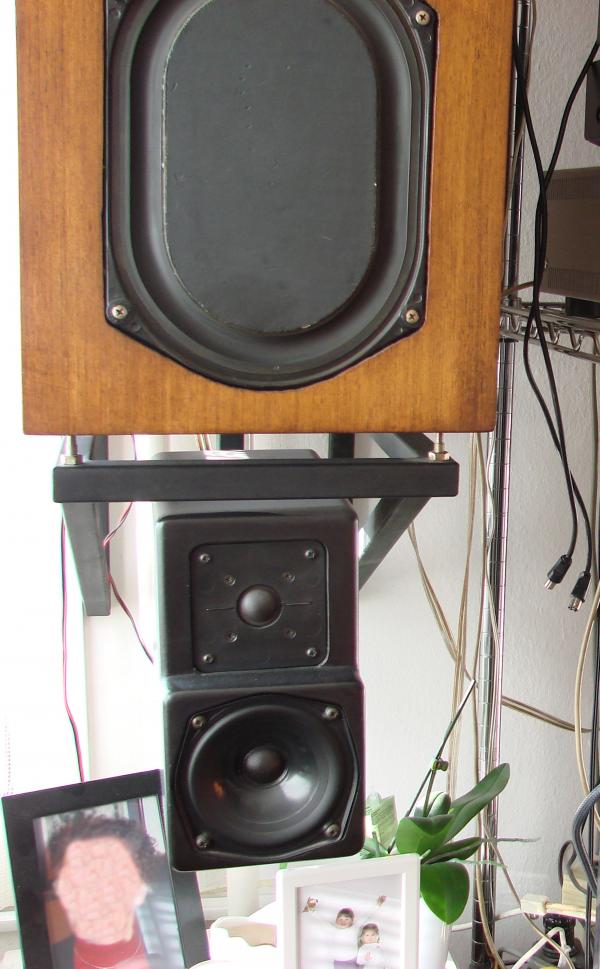 25 let so bili na steni na stojalih, aspuh pod strop, TL na iglah, sateliti na plošči malenkost toe-in. Nepozabni 3D.