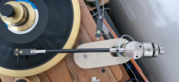 Zmontirani in nastavljeni še dve ročki, 300 mm. Na 2. ročki imam Ortofon OM20 in ostale MM odjemne doze, priklopljene na HEED QUASAR. Na krajši drugi pa Denon DL 103, ne R, ampak prvotno verzijo v panzerholz ohišju in 14g teže, priklopljeno na VALABa.