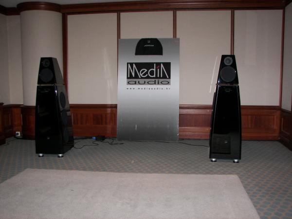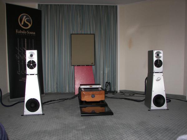 Prva soba in takoj odličen zvok. Hrvaški zvočniki Beta Systems C2 (keramični visokotonci Accuton), EMM Labs cd player in EAR elektronika. Bogat, prijeten zvok z ogromno detajli in z odličnim basom. Nad ceno zvočnikov sem bil zelo presenečen, cena za par: 3000 eur (brez sejemskega popusta)