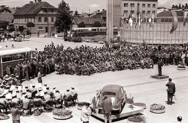 Govorimo namreč o prvi fotki na kateri je tudi dobro viden obelisk postavljen ob 7. kongresu Zveze komunistov aprila leta 1958. Tako, da je fotka posneta med 1958 in 60. Kdo pa je bil "glavna zvezda" kongresa leta 1958 pa se itak dobro ve. Da pa je vse potekalo po "planu i programu" si je pa osebno že pred kongresom ogledal in kot strastni fotograf tudi pofotkal. In bog ne daj, da bi bila katera od razstavljenih fotk fotomontaža.