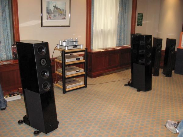 Prezentacija Sonus Faber Liuto zvočnikov z Audio Research elektroniko. Zvok soliden, dinamičen, mali trosistemski zvočnik je nekajkrat kar konkretno stresel strop iz gips plošč.