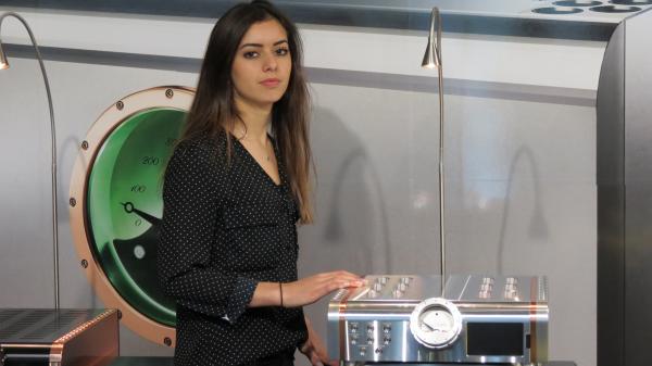 Gospodični pozirata zraven manjše verzije poslikanih zvočnikov ki stanejo 40.000 spodnji veliki pa stanejo 110.000 eu.