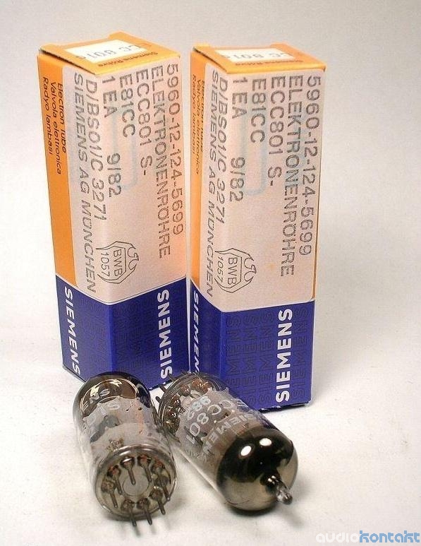 Parček SIEMENS ECC801S (12AT7, ECC81) NOS in NIB uparjene, kvaliteta primerljiva z Telefunken ECC801S, cena je za par | ![]() |