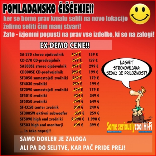 V podjetju Corrado v mesecu maju poteka odprodaja HI-FI opreme po ugodnih cenah. Glavni razlog za odprodajo je selitev podjetja na novo lokacijo. Vabljeni torej v Corrado, dokler je oprema še navoljo - se vidimo tam!