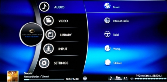 Electrocompaniet ECM-2 poleg Qobuz (24bit - 192 kHz) ponuja tudi programski vmestnik WIMP in TIDAL (16bit - 44.1 kHz).