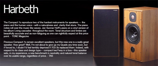 Model Compact 7ES-3 dviga ultra-transparentno Harbeth tehnologijo RADIAL2™ zvočnih membran na nov nivo zmogljivosti. Predstavlja kombinacijo naravnega zvoka ter žanrske versatilnosti.