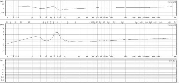 Za ta tip zvočnika je značilno sedlo. Menda je tako tudi pri bass reflex zvočnikih. Vidimo, da krivulja pri meritvi glede na simulirano v sedlu (resonančna frekvenca) premaknjena v desno za približno 10Hz.