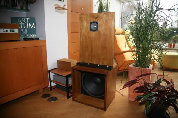 alpha 15A in Fostex FF125wk. Ojačevalci so QUAD 306 za alpho in pass F5 za fostexa. Kretnica je aktivna in sicer Linkwitz Riley 24db/okt. Tiskanini za kretnico in napajanje sem nabavil pri: