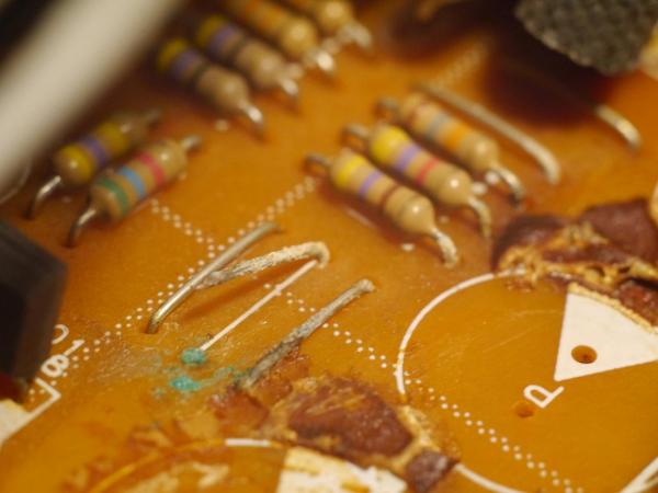 Starejše Yamahe in Sansui so znani po kislem lepilu. Kondenzatorji so bili lepljeni na PCB z neoprenskim lepilom, katero je s časom razjedlo vso kovino pod ali ob lepilu. Povezave so izgubile stik, v najslabšem primeru je odletel stik na maso in so pokale komponente. Je pametno poservisirati dokler aparatura še dela.