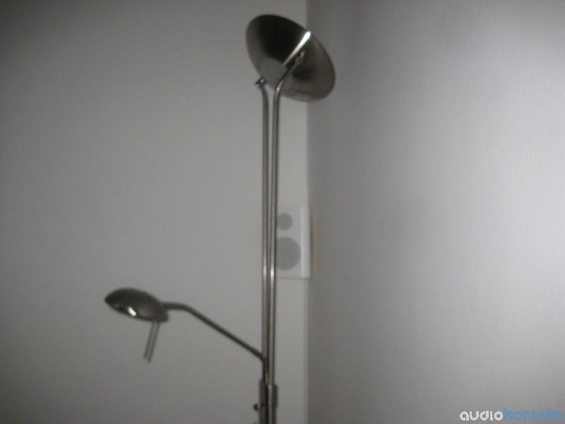 Prvo mislim, da na subwoofer ne paše nič, sam pa tudi mora stati na tleh.Ne vem, če torej tisto stojalo res mora biti tam kjer je!